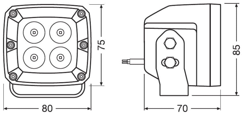 OSRAM LEDriving Cube VX80-SP można mocować do samochodów osobowych, ciężarowych, maszyn rolniczych, pojazdów użytkowych, pojazdów budowlanych, przyczep kempingowych, pojazdów terenowych i quadów 2).